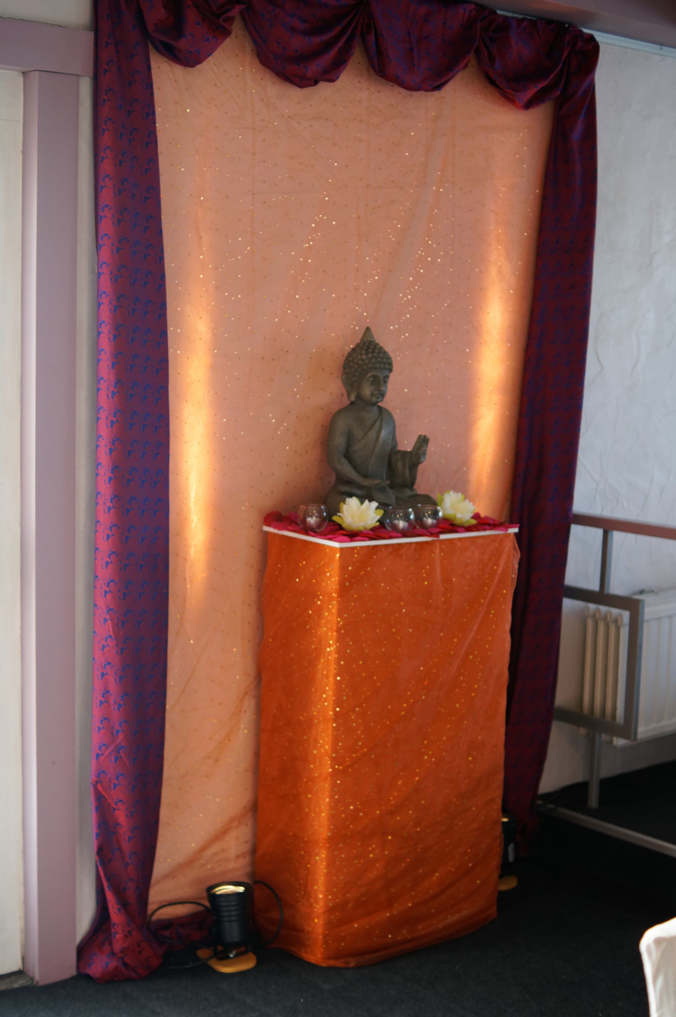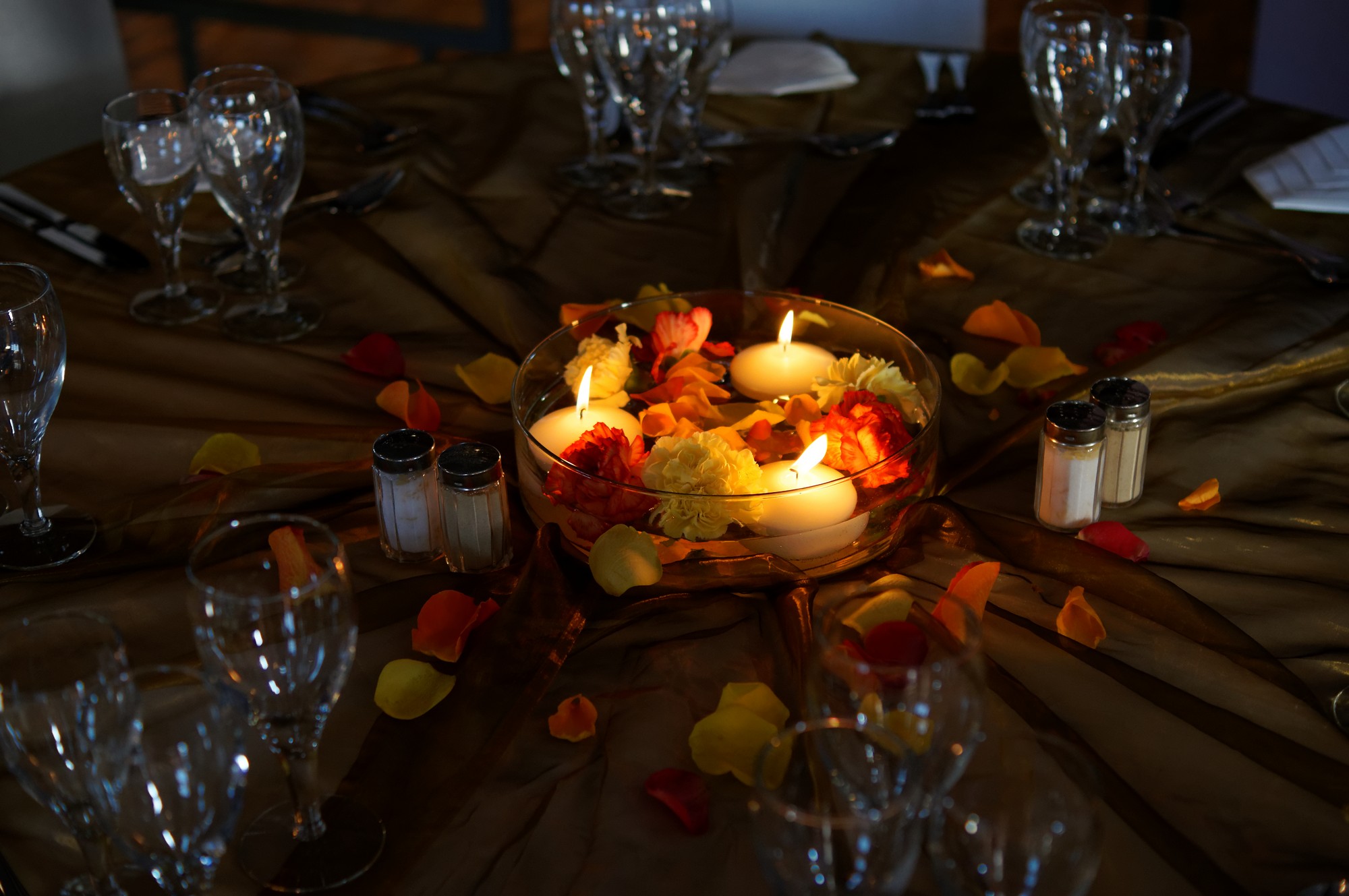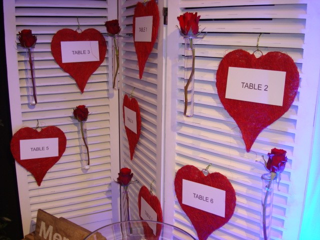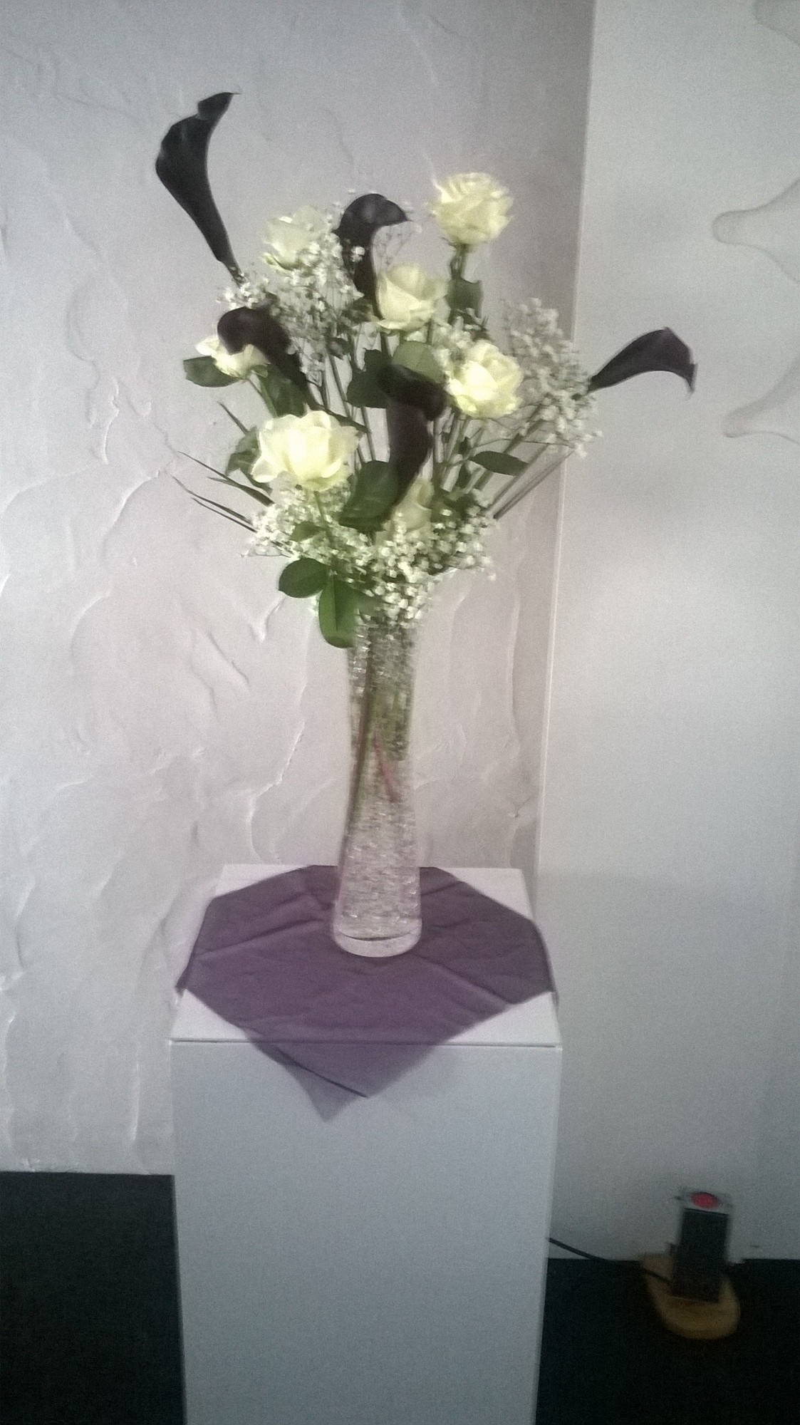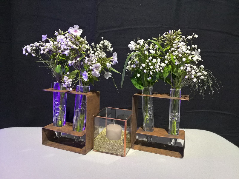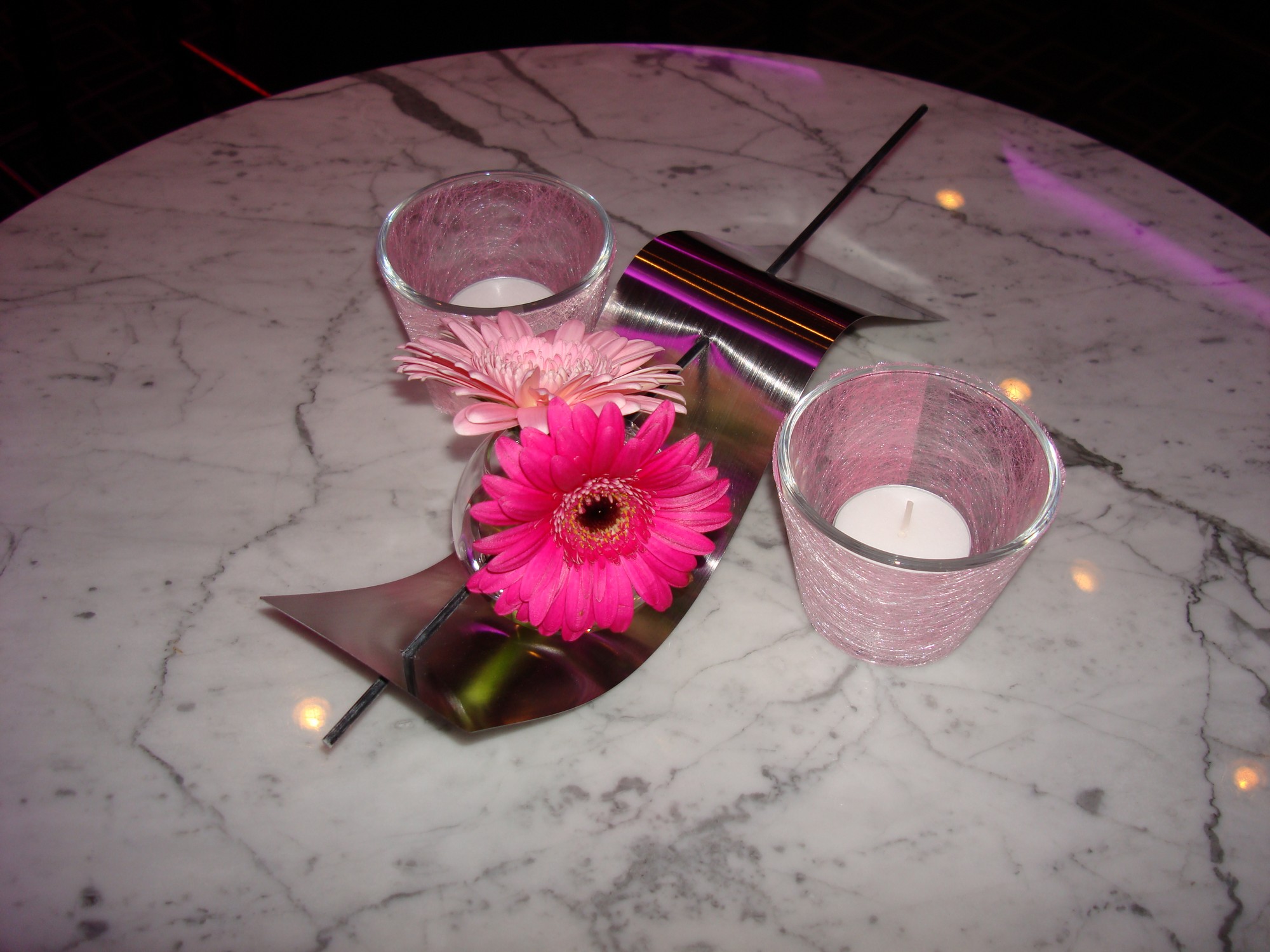Sur commande, nous fournissons les fleurs, les bougies, sables, paillettes, plumes, chemin de table et autres consommables.