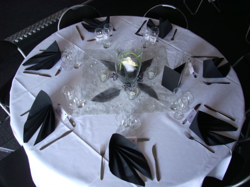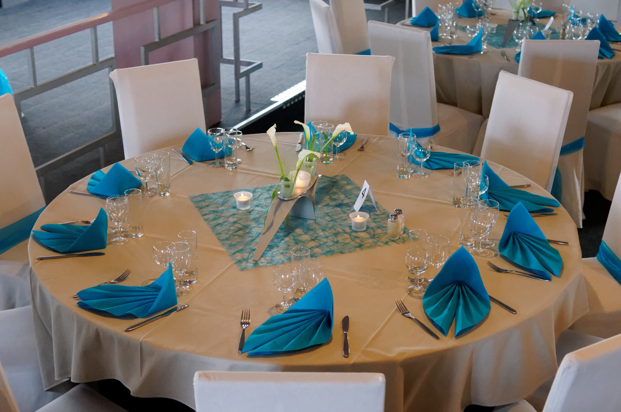 Nous sommes également en mesure de vous assister pour dresser vos tables et plier vos serviettes (uniquement en accompagnement de décoration).